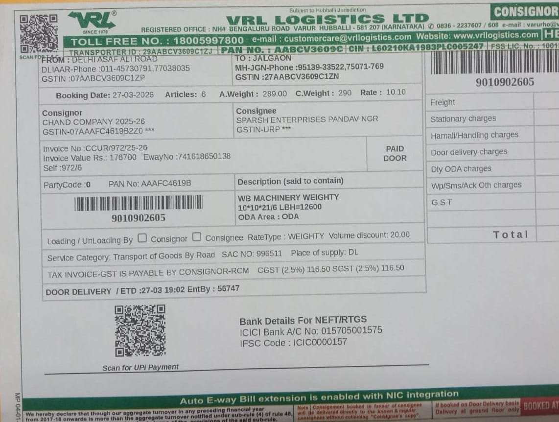 26/03/26 | Rs. 2,22,000.00 | 6 Nos. | ACL Stores Depot, Central Railway, Opposite to Electric Loco Workshop (POH). RPD Road (3K.M. from Bhusawal Railway Station towards ordnance factory),Bhusawal, Maharastra, Pin-425201 for delivery/crac/ro:8600511709/8005759141, for bills/payment:8077076365. | 8600511709 8005759141 Call 8799919425 Delivry9673944700 |